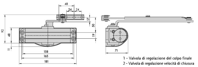 Chiudiporta aereo con braccio normale senza fermo;